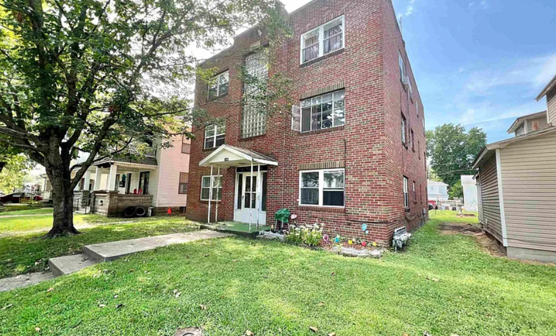 Welcome home to this well-maintained brick apartment building nestled on a peaceful, tree-lined street. This property offers timeless character with its solid brick exterior, large windows that invite in natural light, and a welcoming covered entryway.